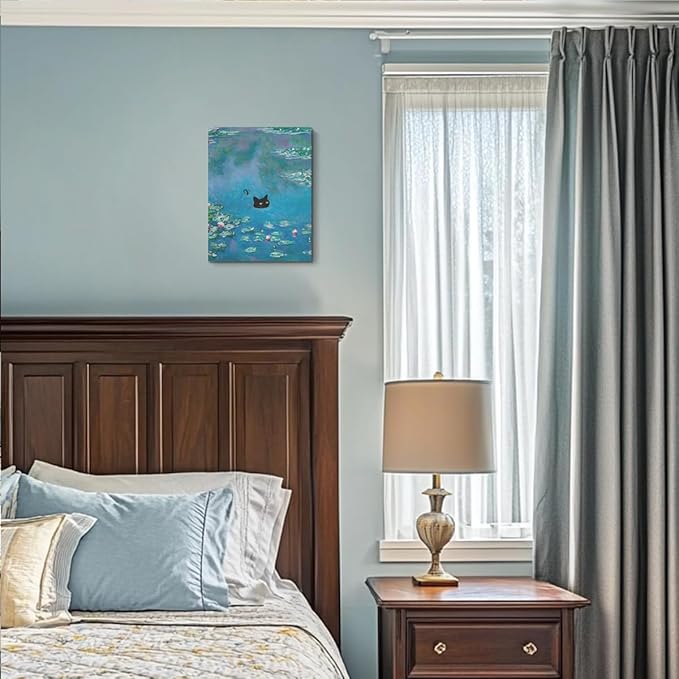 HZMLYDJ Cute Cat Wall Art Funny Cat in Water Lilies Posters Vintage Canvas Wall Art for Room Bedroom Living Room Bathroom Decor Aesthetic, Trendy Paintings Aesthetic Cats Lovers Decoration