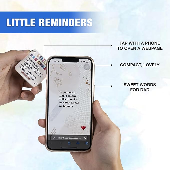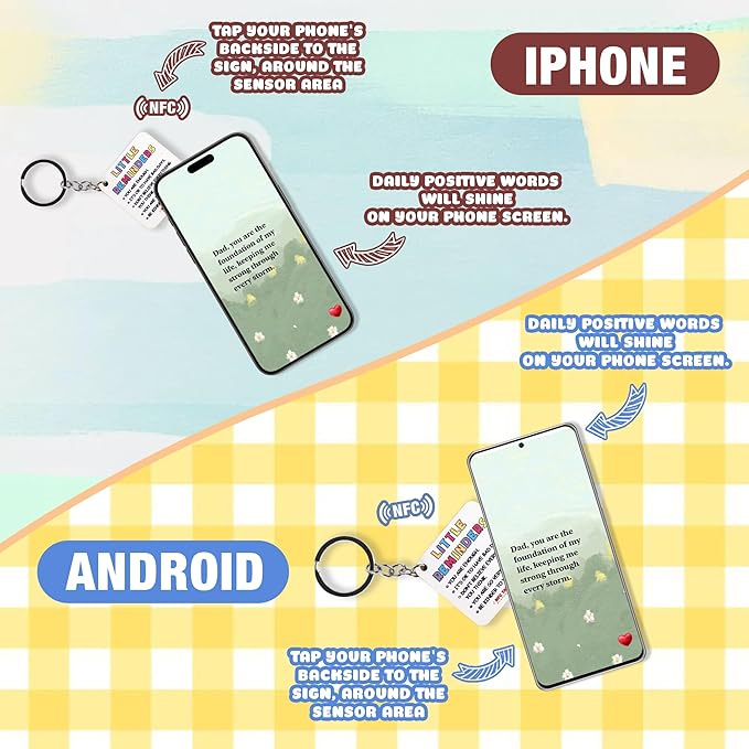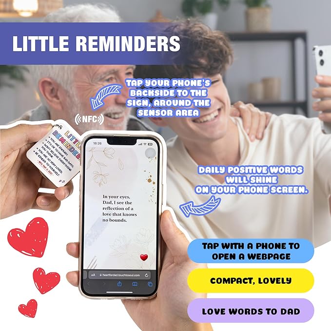 - 📱 NFC Keychain for Daily Positive Reminders 📱 Includes a special NFC keychain—simply tap with a smartphone to open a page filled with uplifting words for Dad. A digital twist that adds modern charm to this nostalgic gift, doubling as a fathers day card or happy birthday dad surprise.