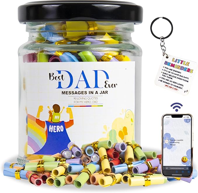 90 Messages in a Jar for Dad with NFC Keychain, Dad Birthday Gift, Gifts for Dad, Christmas Gifts for Dad, Dad Gifts from Daughter, Best Dad Ever Gifts, Dad Gifts