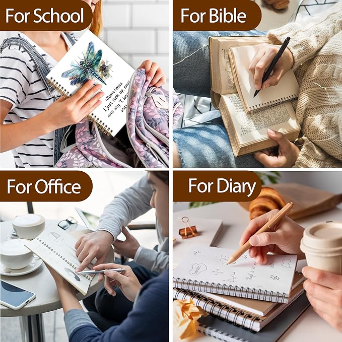 - Spiral Bound Notebook:This journal notebook features a spiral design that allows it to open completely 180°flat for easy writing. It also folds seamlessly 360°without creasing. The pages are easy to tear and don't fall apart easily