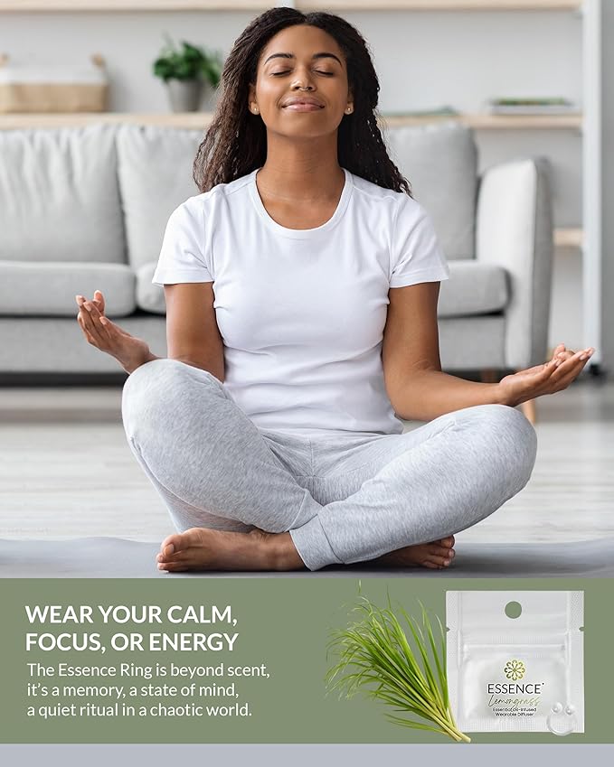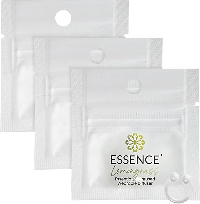 Essence Wearable Aromatherapy Nasal Diffuser – Lemongrass Essential Oil Nose Ring Silicone Inhaler for Stress & Mood Support - Made in USA & Travel-Friendly (3 Pack)