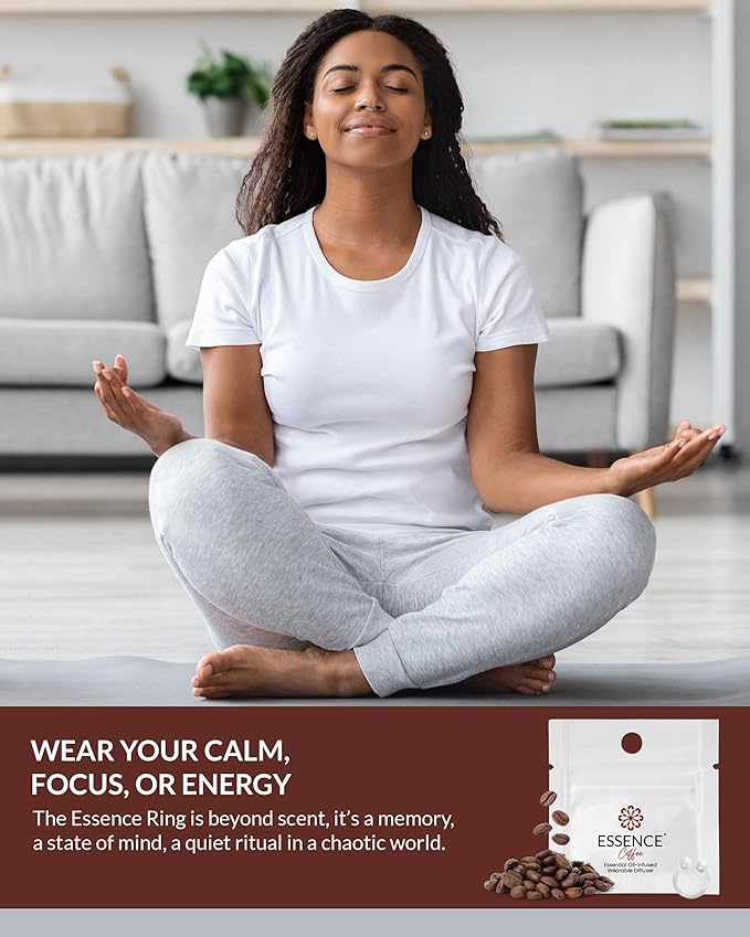 Essence Wearable Aromatherapy Nasal Diffuser – Coffee Essential Oil Nose Ring Silicone Inhaler for Stress & Mood Support - Made in USA & Travel-Friendly (3 Pack)