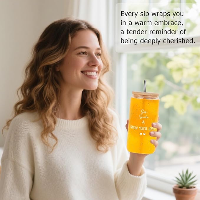 - Relaxing Gifts For Women Include: A wildflower glass coffee cup, A reusable stainless steel straw, A lavender soy wax scented candle, A bath salt, A fizzy bath bomb, A cozy fuzzy socks, A greeting card, A handmade knitted heart doll, loving token that symbolizes your heartfelt thoughts and care. Elegantly housed in our 'A Hug in a Box' keepsake gift box – beautifully wrapped and ready to bring comfort and joy right to her doorstep.