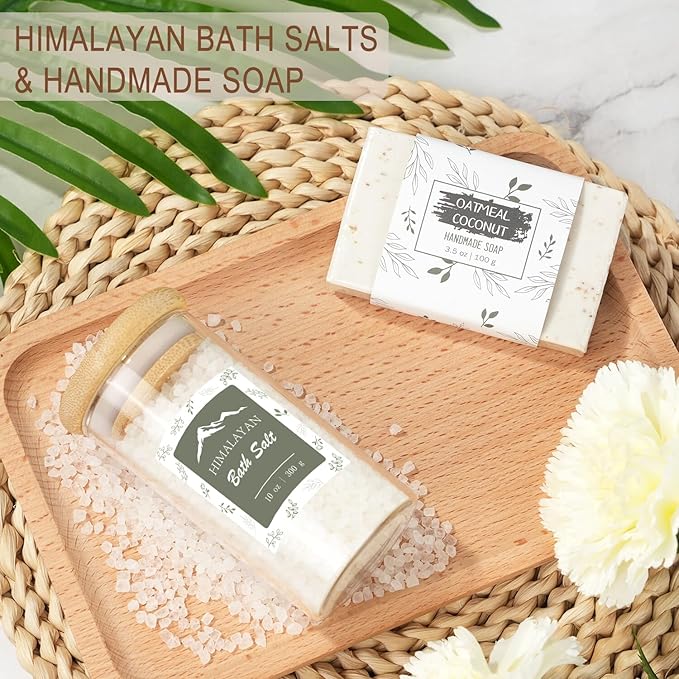 - Bath Time Tranquility: Create a serene spa experience at home with our bath essentials. The soothing bath salt and handmade soap in our self care gifts for women basket help her unwind, while the artificial succulent adds a touch of nature to her space. This get well soon gift basket for women is designed to promote relaxation and recovery.