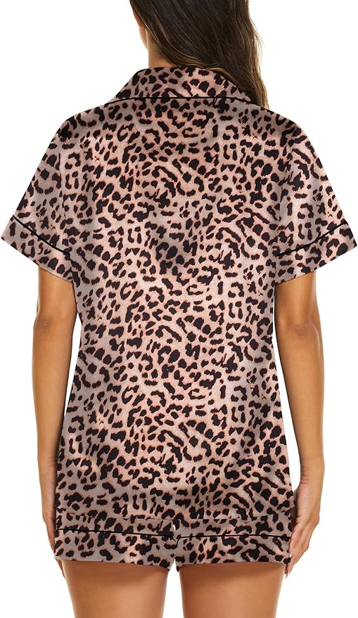 - Elegant design:Short sleeve pajama tops, button down front,notch lapel collar and one chest pocket.Matching pajama shorts for women with stretchy elastic waist that fits for any body size.Lightweight and Breathable,perfect for sleeping, lounging, or morning coffee in effortless grace