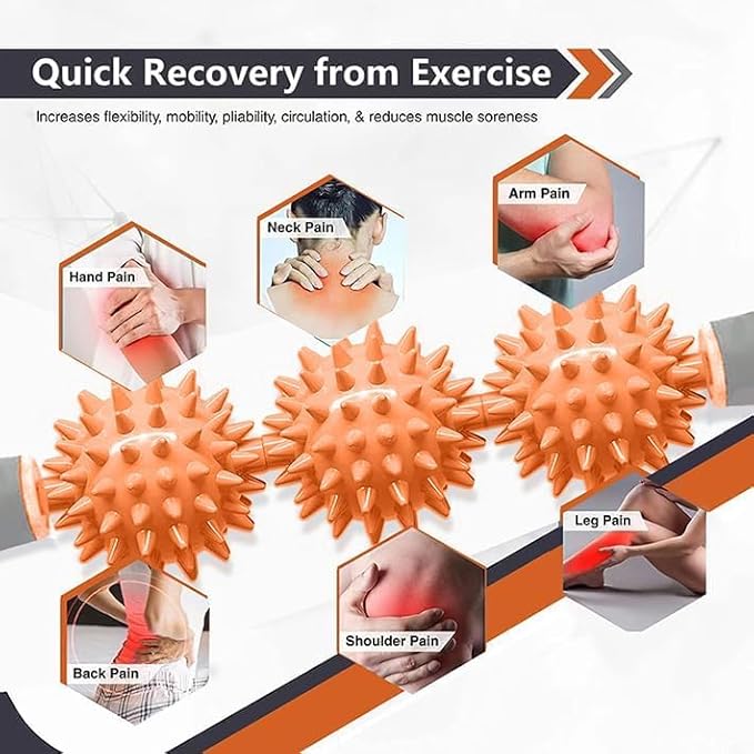 - ā 3 MASSAGE BALLS FOR BODY RELAX: Spike nodules balls provide deep tissue massage with acupoints stimulation to promote blood circulation and help reduce muscle pain, soreness, pain and nodules. Used at least once daily for around 5 to 10 minutes per each target skin area, helps loosen muscles before and after workouts to reduce risk of injury