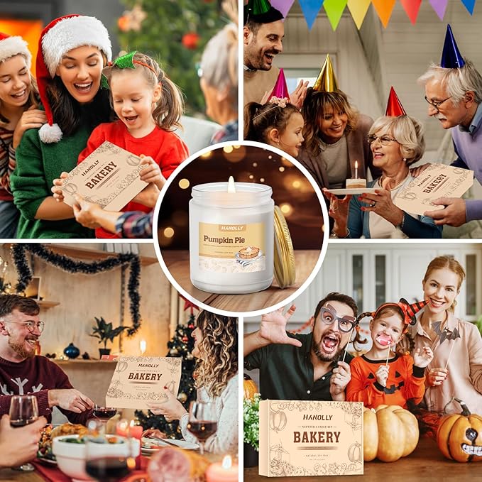 - Versatile Fall Candle Gift Set for Every Occasion:The ultimate candle gift set arrives ready-to-gift in luxe holiday packaging. Perfect as teacher's day gifts, women's birthday presents, Halloween treats, or Christmas surprises. Gender-neutral soy wax candles delight all ages with gourmet bakery scented candles experience!Share the gift of indulgence and transform any space into a fragrant sanctuary!