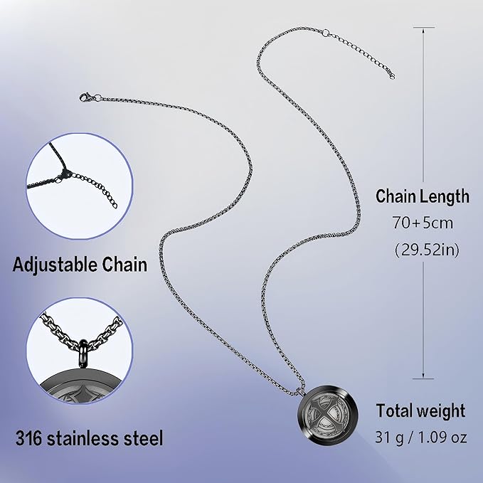 - All Day Wear, Ultimate Comfort- Made of hypoallergenic 316L stainless steel, naturally tarnish-resistant and extremely skin-friendly, Pendant Diameter: 30 mm/1.18 inches, Pendant Thickness: 7 mm/0.27 inches, Chain Length: 27.56 inches, Weight (Pendant + Chain): approx. 31 grams/1.09 ounces, suitable for all occasions
