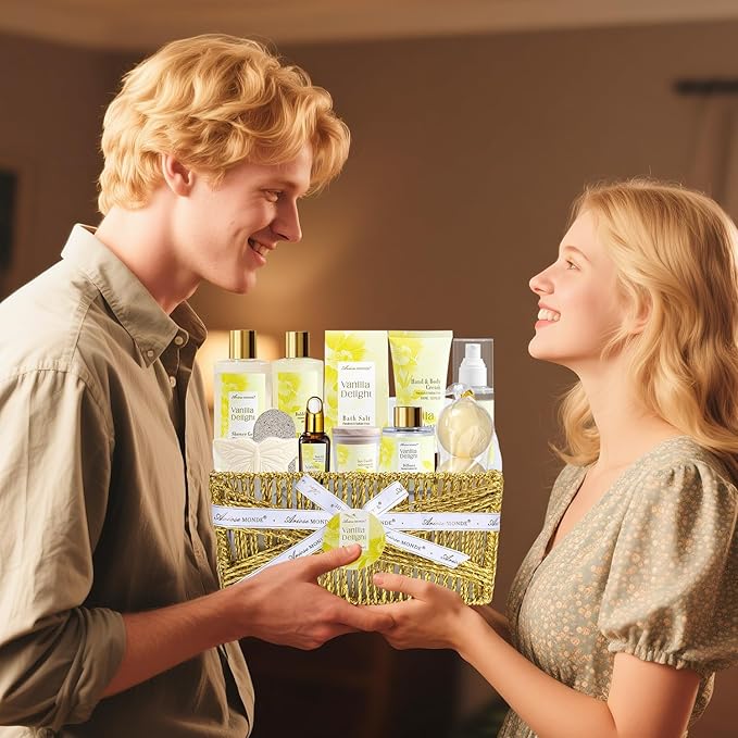 Spa Gifts for Women, 15Pcs Vanilla Rose Women Spa Gift Baskets w/Body Mist, Diffuser, Bath Bomb. Relaxing Bath Sets, Mothers Day Gifts for Mom, Unique Birthday Gift Basket
