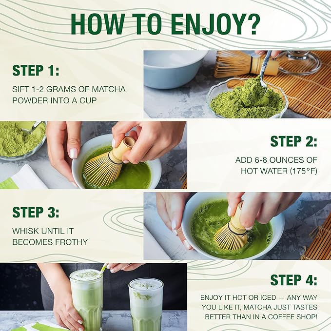 - Versatile & Easy to Use - Use it for your favorite drinks and recipes: from matcha tea, matcha latte, and matcha latte powder, to matcha tea powder, matcha powder for lattes, and even unsweetened matcha powder smoothies or baked goods.