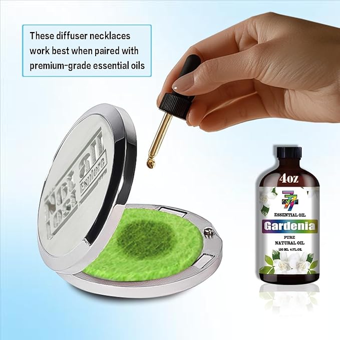 - Essential Oil Necklaces can be used with our GV77ZF Essential Oils to carry around, be stylish and create the perfect aromatic experience: β Enhance your yoga class with Frankincense Essential Oil β Promote meditative calm with Bergamot Essential Oil β Improve focus at work with refreshing Citrus Essential Oil β Soothe travel fatigue with Lavender Essential Oil β Energize your day with Peppermint Essential Oil β Relax and add a sense of well-being with Gardenia Essential Oil; Our essential oil necklaces are available in all premium essential oil brands