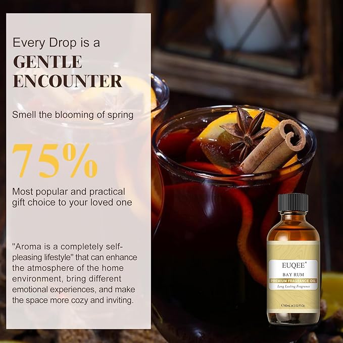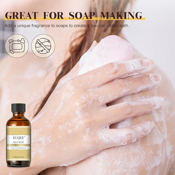 EUQEE Bay Rum Fragrance Oil with Glass Dropper, Essential Oils for Candle & Soap Making, Diffusers, DIY Bath Bombs (2.02 Fl oz/60 ml)