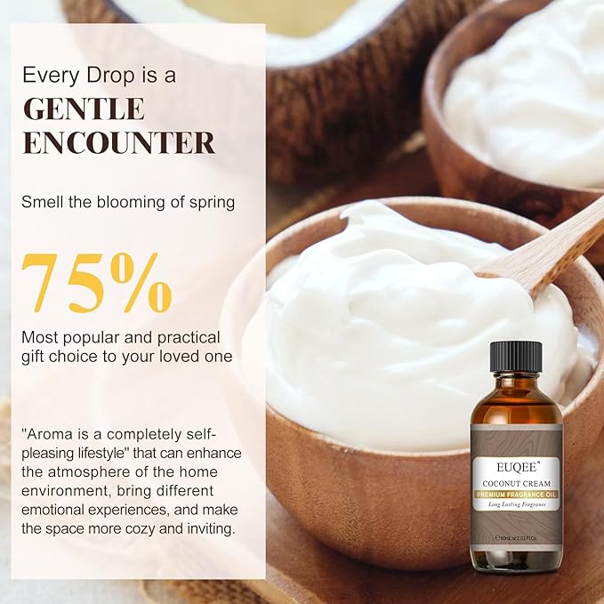EUQEE 2.02 Fl OZ Coconut Cream Fragrance Oils, Premium Fragrance Essential Oils with Glass Dropper for Diffusers, Soap Candle Making(60ml)