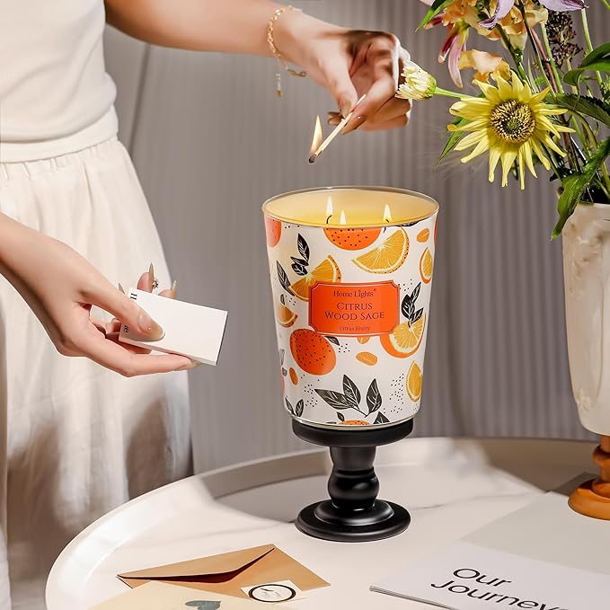 HomeLights Citrus Wood Sage Scented Candles | 34oz Soy Candles Eclectic Mixed Styles 3-Wick Large Candle Jars | Ideal Candle Gifts for Events, Home Decor Stress, Relief & Relaxation