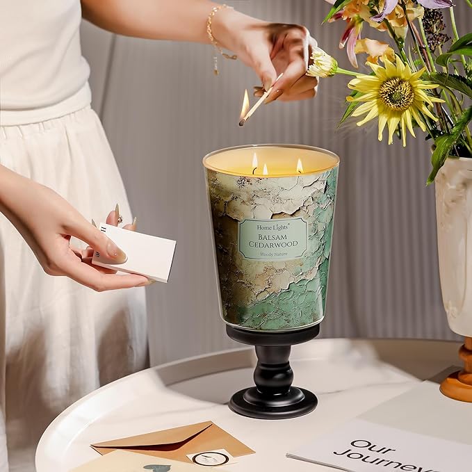 - 【Long-Lasting & Relaxing Candles】Enjoy up to 80-130 hours of soothing burn time with our premium scented candle. Made with natural soy wax and a triple cotton wick for a clean, even burn.The rich Balsam Cedarwood fragrance creates a calming ambiance.