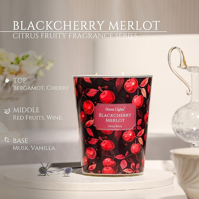 - 【Blackcherry Merlot Fragrance for Indulgence】These richly scented candles blend juicy black cherry top notes, grounded by a warm, woody base of musk and vanilla. Ideal for creating an opulent ambiance in dining rooms, bedrooms, or intimate gatherings.