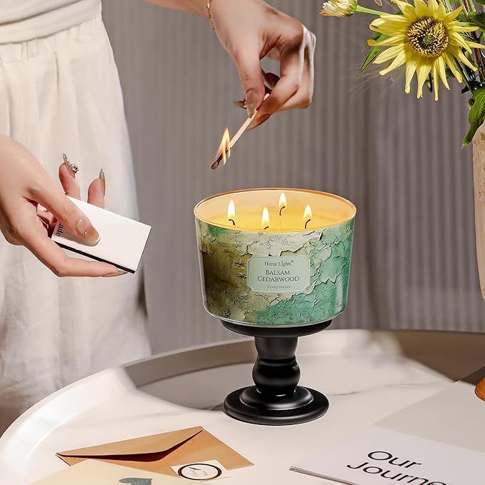 HomeLights Balsam Cedarwood Scented Candles | 18oz Soy Candles Industrial Chic 4-Wick Large Candle Jars | Ideal Candle Gifts for Events, Home Decor Stress, Relief & Relaxation