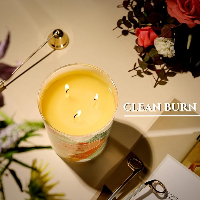 - 【Eco-Friendly and Clean-Burning】Soy wax blend candle is designed to burn cleanly and efficiently. The 3-wick construction minimizes soot and ensures an even melt pool, allowing you to enjoy a cleaner, healthier environment without compromising on performance or style.