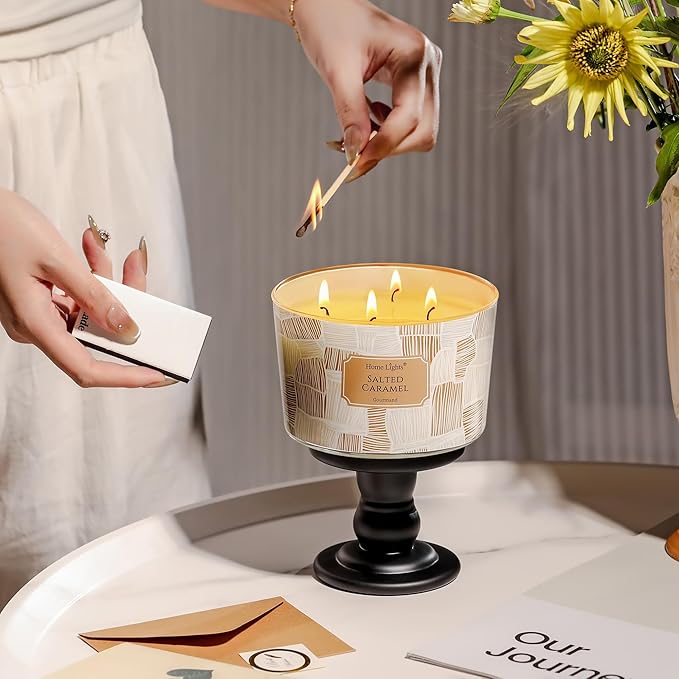 HomeLights Soy Wax Candles for Home Scented, 4-Wick Candles in Salted Caramel Scented, Rustic Modern Aromatherapy Candles Gift for Parties, Relaxing, 18oz