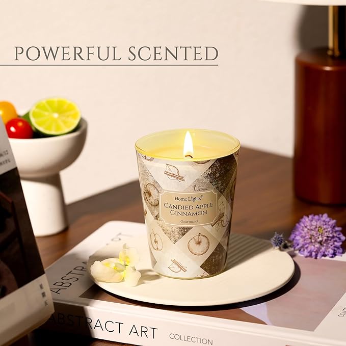 - 【Captivating Candied Apple Cinnamon Aroma】Scented candles capture the essence of Candied Apple Cinnamon with the juicy sweetness of caramelized apples and the warm, spicy kick of cinnamon. Perfect for cozy spaces like living rooms, bedrooms, or bathrooms to unwind and relax.
