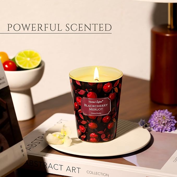 HomeLights Soy Wax Candles for Home Scented, 1-Wick Candles in Blackcherry Merlot Scented, Aromatherapy Candles Gift for Parties, Relaxing, Eclectic Mixed Styles, 6.7oz