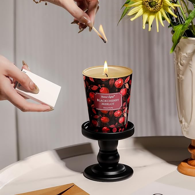 - 【Blackcherry Merlot Fragrance for Indulgence】These richly scented candles blend juicy black cherry top notes, grounded by a warm, woody base of musk and vanilla. Ideal for creating an opulent ambiance in dining rooms, bedrooms, or intimate gatherings.