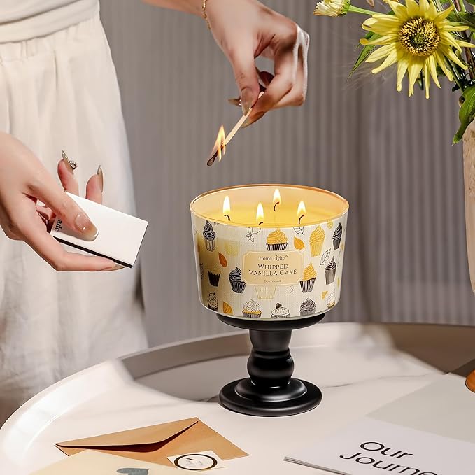HomeLights Scented Candles for Women & Men, 18oz Candle Jars Aromatherapy 4-Wick Candle, Ideal for Rustic Modern Home Decor and Gifts, Whipped Vanilla Cake