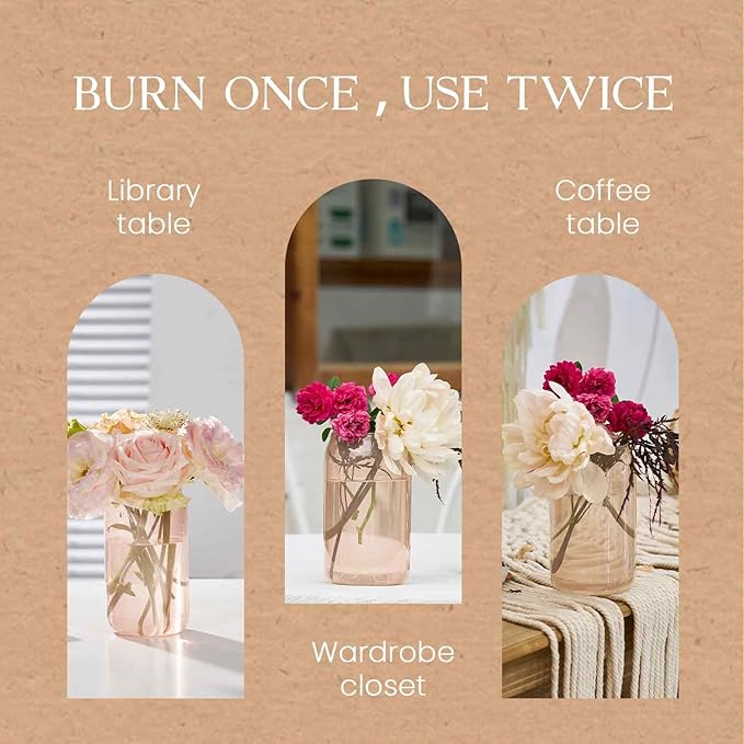 - 【Recycling glass jars】:The glass jar for the candle is reusable, when the Jar Candle is used up, wash the candle with soapy water and you will get a small pen holder or a small flower pot. this scented candle is the perfect Home decoration, creating a cosy atmosphere and bringing peace and relaxation to the room.