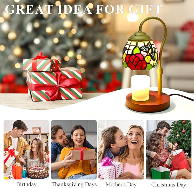 - Best Gift Choice: The electric candle warmers comes with beautiful tiffany style stained glass, making it an ideal present for any occasion Ideal gift choice for your family, loved ones and friends on Mother's Day, Father's Day, Thanksgiving, Christmas, Housewarming, Birthday Day, Anniversary Day, Valentine's Day. This vintage candle warmering lamp is a perfect home decor bringing joy and delight to your loved ones