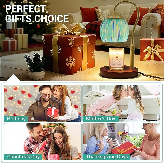 - Perfect Home Deco & Gifts: Our modern wax ocean-themed warmer lamp is a stylish combination of wooden base and the unique blown art glass, make this a perfect art deco piece to enhance the beauty of your home. This electric candle warmer features exquisite iridescent glass, making it the perfect gift for any occasion, Ideal gift choice for your family, loved ones and friends on Mother's Day, Father's Day, Thanksgiving, Christmas, Housewarming, Birthday Day, Anniversary Day, Valentine's Day.