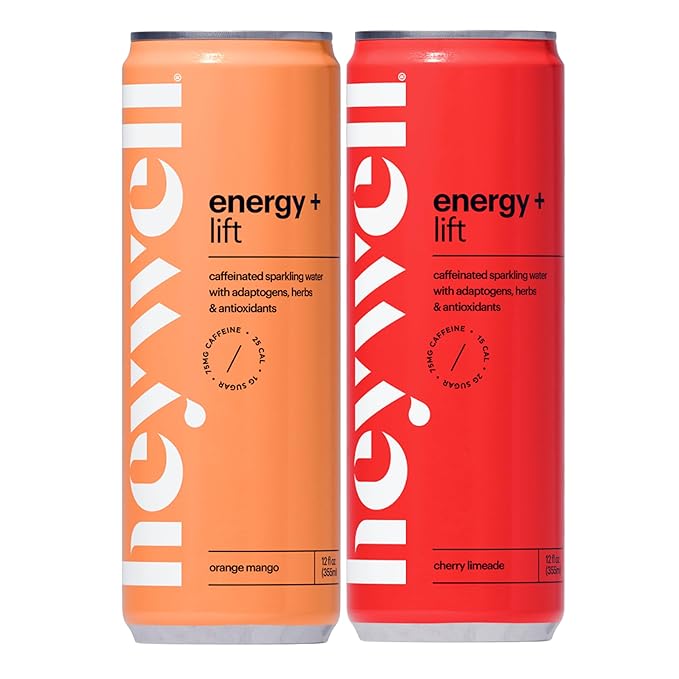 - VARIETY PACK – Cherry Limeade & Orange Mango This Heywell variety pack includes two refreshing flavors designed to support energy, focus, immunity, and stress relief. Lightly sparkling with just 10 calories and 1g sugar, these adaptogen drinks are made with organic ingredients, electrolytes, and are Non-GMO, Vegan, Gluten Free, and alcohol-free—perfect as a functional mocktail or daily boost.