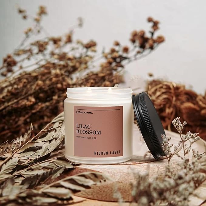 Hidden Label Lilac Blossom Scented Candle, 12oz Natural Soy Non Toxic, 70H Burn Time 2 Wick Aromatherapy Candle for Home Decor,Stress Relief & Relaxation,Gifts for Women & Men