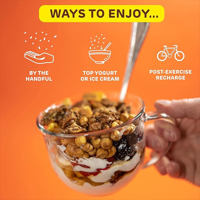 - SNACKS MADE FOR SHARING: Multi-packs to keep in the pantry for everyone to enjoy. Each order contains 8, single serving pouches of our Chickpea and Granola crunchy snack mix. Add a crunchy twist to salads, soups, grain bowls, or charcuterie boards, or grab a handful when you need something crunchy on the fly.