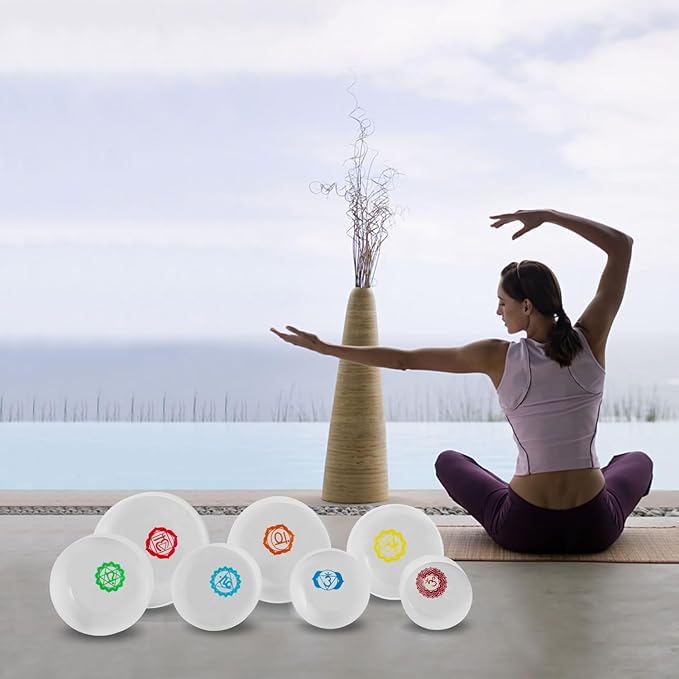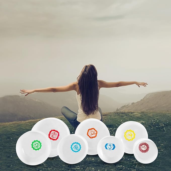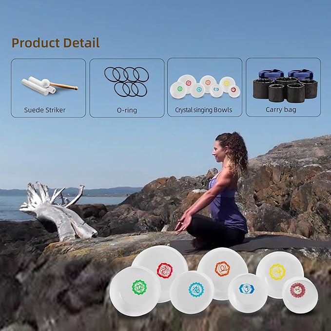 - Complete 7-Piece Chakra Singing Bowl Set – Includes 6"–12" bowls for all chakras: Root, Sacral, Solar Plexus, Heart, Throat, Third Eye, and Crown. Comes with 1 rubber mallet, 2 suede strikers, 7 silicone O-rings, and 2 padded carrying cases.