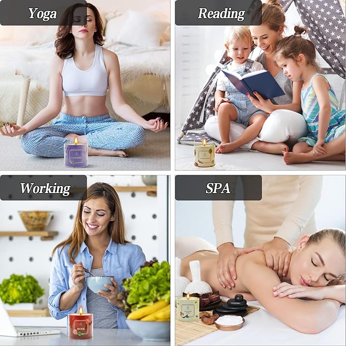 - Eco-Friendly Materials: Crafted with high quality, natural ingredients, Aromatherapy candles use plant based wax and lead-free cotton wicks. They come in reusable and recyclable tin jars, can make DIY candle, home decoration & storage and organization