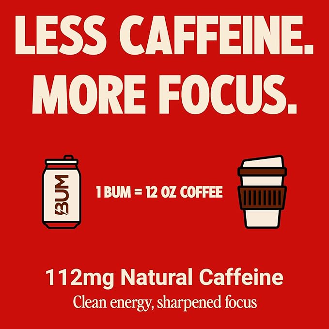 - Keep It Clean: Leave the drinks that contain a laundry list of ingredients in the past. Bum Energy contains just two simple ingredients, 112mg of Caffeine & 250mg of Cognizin. Made with zero sugar and no artificial colors, every sip unlocks pure, untapped potential.