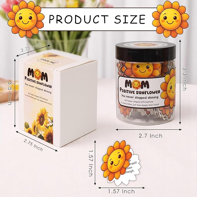 - π» 60 Flower-Shaped Affirmation Cards for Mom β Each sunflower card carries a heartfelt message to uplift, encourage, and remind Mom how much she means to you. A beautiful way to say "I love you" again and again.