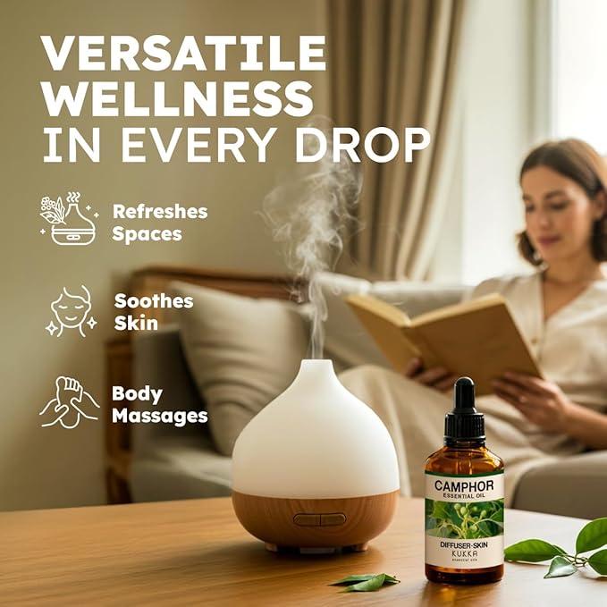 - Use camphor essential oil for diffuser to invigorate and refresh your spaces. Its distinctive scent inspires a peaceful, invigorating environment for work, and creates an uplifting atmosphere that can anchor daily self-care routines.