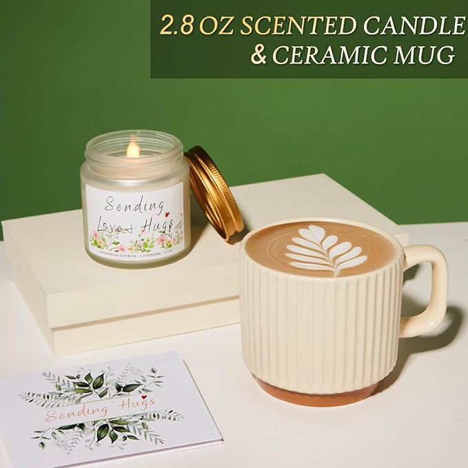 - THINKING OF YOU GIFTS FOR HER: The positive crochet brings joy and inspiration, while the ceramic mug adds a touch of warmth to her daily routine. The scented candle completes the experience with a calming lavender - this inspirational gifts provide comfort, solace & encouragement. Ideal as get well soon gifts, after surgery gifts, cancer care gifts, feel better gifts, sending hug gifts, comfort gifts, recovery gifts, memorial gifts grief condolences bereavement gift for loss of loved ones