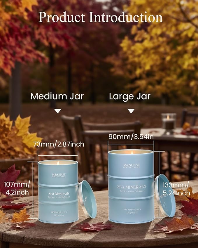 M&SENSE Sea Minerals Scented Candles Ocean Large, Natural Soy Candles 21.2oz 120 Hour Slow Burning,Coconut Candles for Stress Relief Meditation Relaxing,Summer Soy Candle.