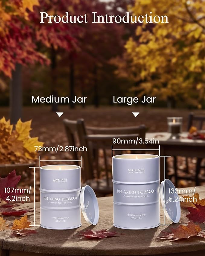M&SENSE Tobacco Scented Candles Natural Non Toxic, Aromatherapy Candle for Stress Relief Meditation Relaxing, Housewarming Gifts for Women Men, 11.3oz 70 Hour Long Burning