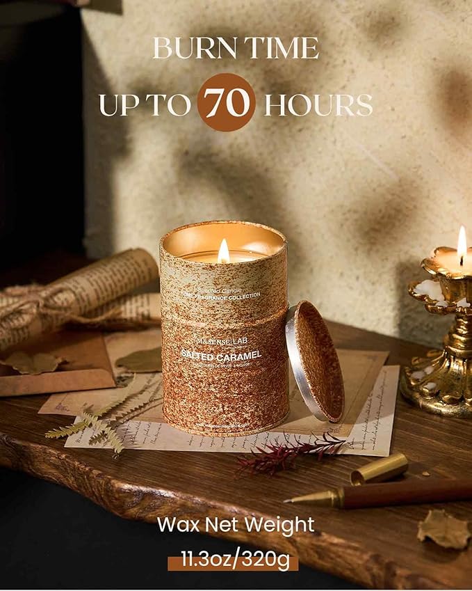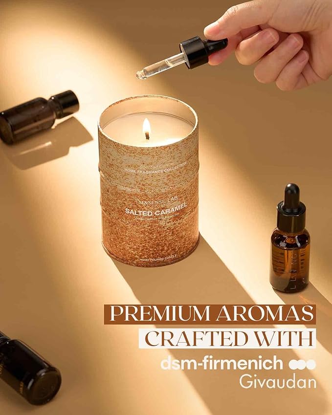 M&SENSE Salted Caramel Scented Candles Natural Non Toxic, Aromatherapy Candle for Stress Relief Meditation Relaxing, Housewarming Gifts for Women Men, 11.3oz 70 Hour Long Burning