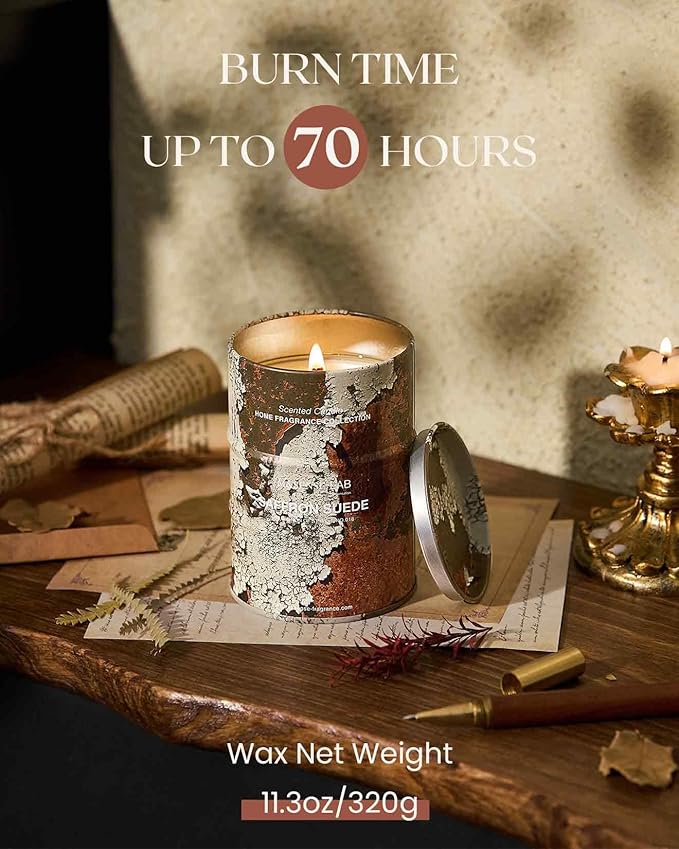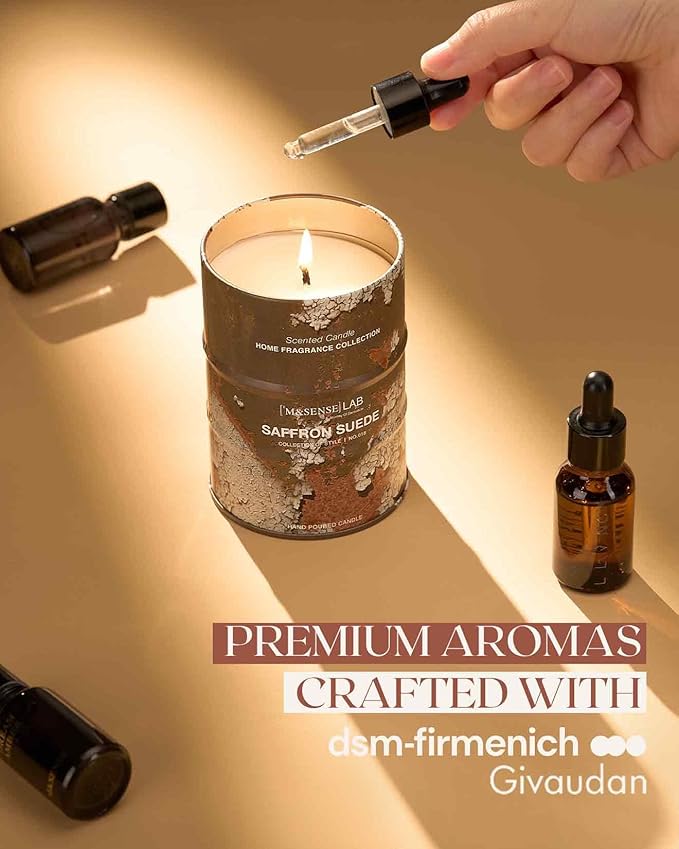 M&SENSE Saffron Suede Scented Candles Natural Non Toxic, Aromatherapy Candle for Stress Relief Meditation Relaxing, Housewarming Gifts for Women Men, 11.3oz 70 Hour Long Burning