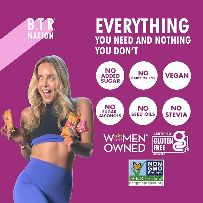 - ✅ NO JUNK, EVER. WE PROMISE: B.T.R. Bars are Non-GMO, Gluten-Free, Dairy-Free, and Soy-Free with a 100% Clean Label. No sugar alcohols, no stevia, no gums or emulsifiers, and no flavors (not even so-called “natural flavors”)
