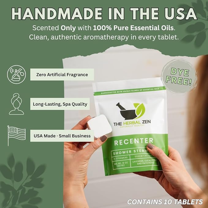 Recenter Shower Steamers Aromatherapy with Lavender and Eucalyptus Essential Oils, Aromatherapy Shower Bombs, Self Care Gift, Birthday Gift for Women, Bath Steamer for Women and Men
