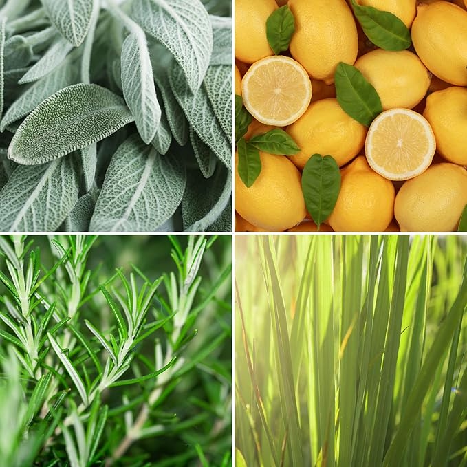 - LEMON + SAGE: Lemon + Sage features an uplifting blend of lemongrass, pink grapefruit, eucalyptus, rosemary, and sage.
