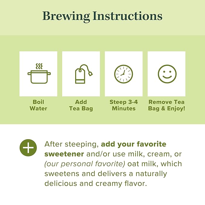 - ECO-FRIENDLY & USA MADE Contains 25 biodegradable, stringless, and tagless tea bags in a resealable pouch. USDA Organic certified and crafted in small batches in the USA for maximum freshness and purity. Our Product Commitments: USDA Organic, Fair Trade, Plant Based, Vegan, Non-GMO, Made in USA