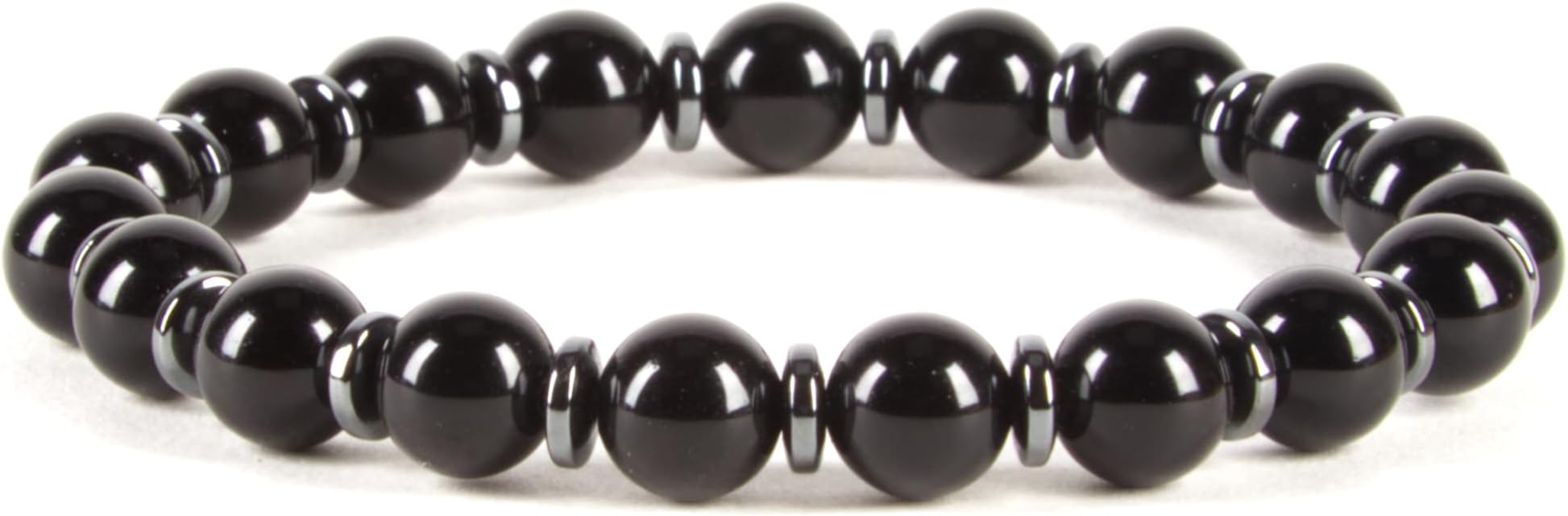 - CONTAINS: A Pair of our Protection bracelets made with 8mm semi-precious beads packaged inside a protective cloth drawstring pouch. One bracelet contains 6mm tigers eye beads and hematite spacers, the other contains black obsidian beads and hematite spacers.