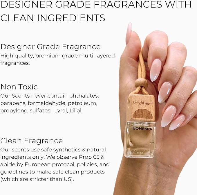 - Hanging Design: Quality square premium luxury designed bottles with wooden bottle caps etched with the bright spot logo, experience the perfect blend of style and functionality, make every drive a sensory delight with our car air freshener diffuser. Packaged in a beautiful box that is a great gift for men and women, family and friends.