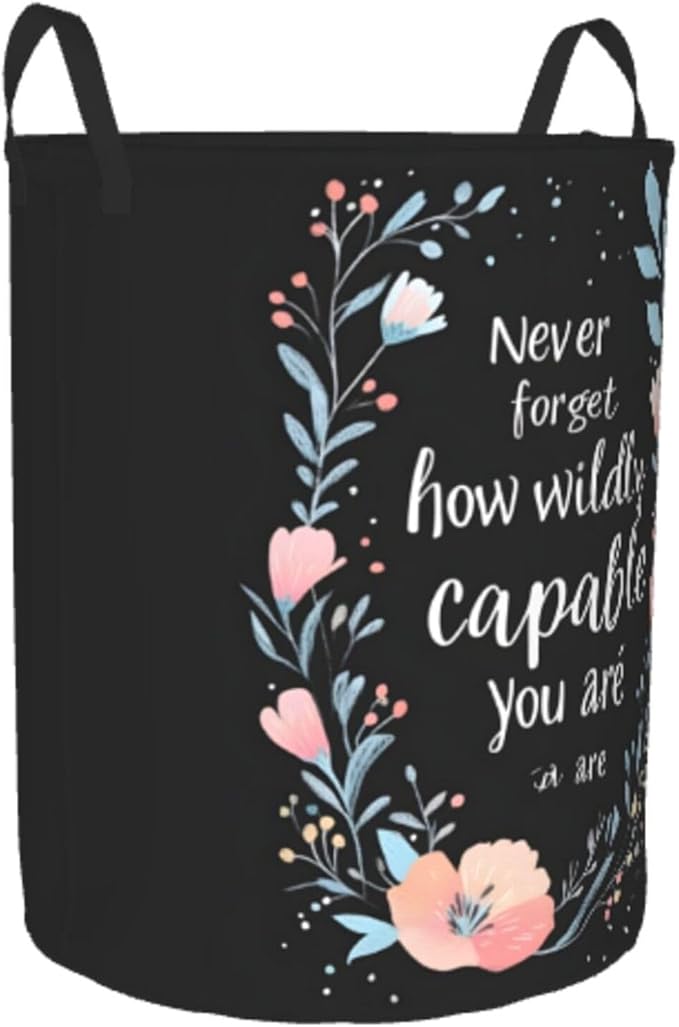 Laundry Basket Encourage Word Collapsible Large Capacity,63l Dirty Clothes Basket Durable Lightweight Hamper With Handles Ideal For Clothes,Toys Home Organization size19.6"L x 15.7"W